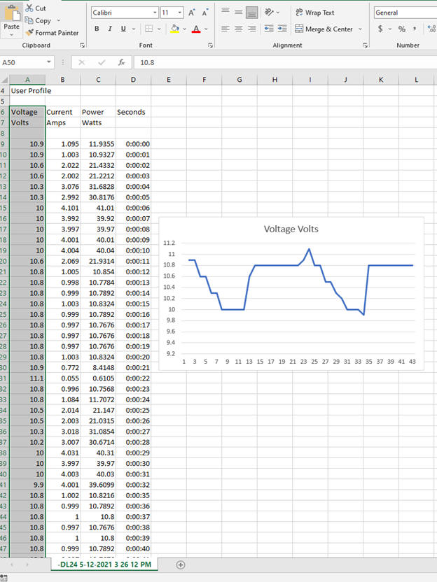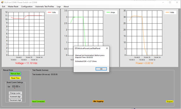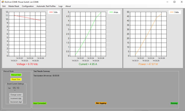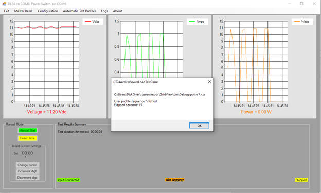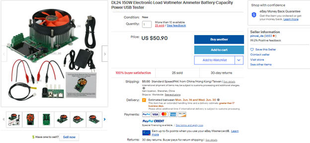 Note, the DL24 is powered by 12V via a standard barrel jack connector. The ground connection used at the power jack is common to the load input ground connectors. One might choose to power the DL24 using a common switched-mode “wall wart” supply. Unfortunately, these commonly available supplies connect ground to the AC power mains neutral. Thus, a substantial difference in ground potentials may exist.